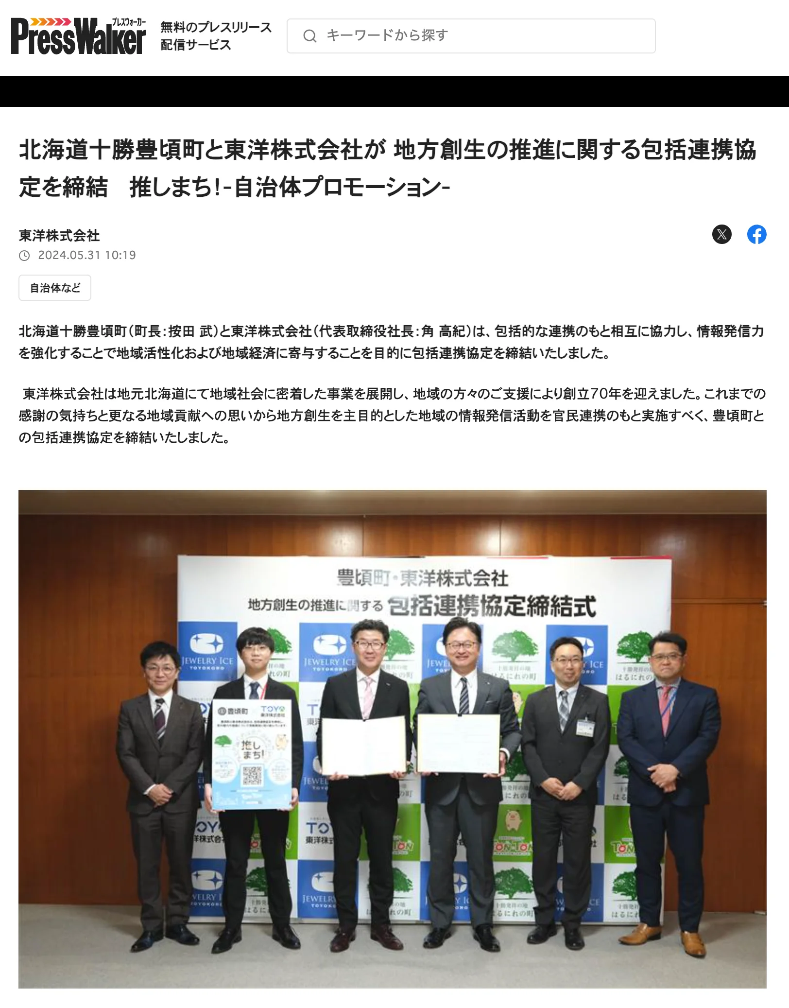 自治体の魅力を発信する当社の取り組み(推しまち!)と北海道豊頃町の包括連携協定について十勝毎日新聞に掲載されました。