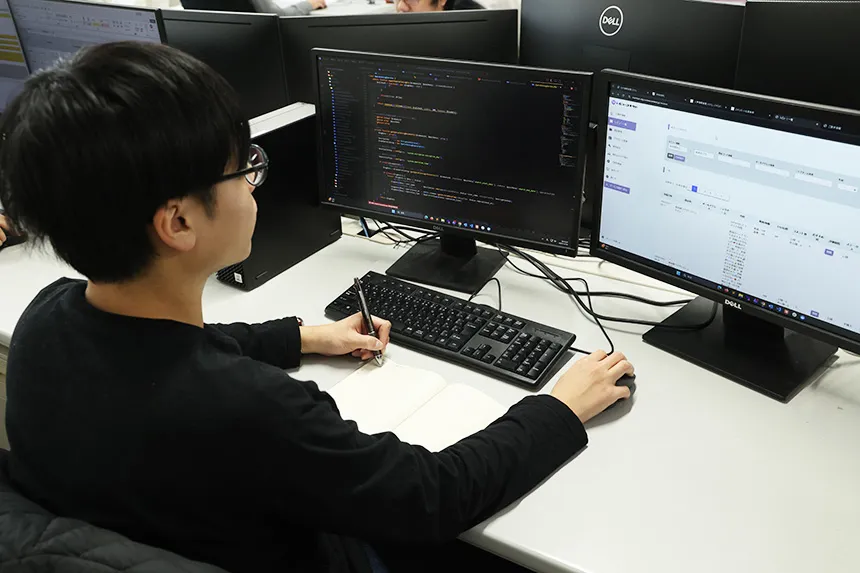研修を通じて基本的なプログラミングスキルを習得し、既存プロジェクトのサポートを担当します。