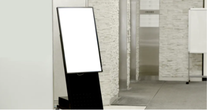 移動・設置が簡単な自立型ディスプレイで、イベント会場や店舗の入口などに最適。電源があれば即時運用でき、案内表示・プロモーション・受付用途など幅広く活用されます