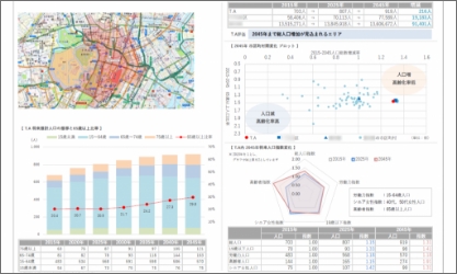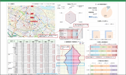 簡易的な指定エリアの特徴や人口情報が一目でわかる資料を作成します。 (詳細情報を知りたい場合は、 商圏調査をおすすめします)