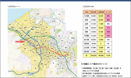 店舗周辺の地区ごとにどれぐらいのチラシを配布すればいいのか、ターゲット層にあった広告展開を行いたい際に必要な資料を用意できます。