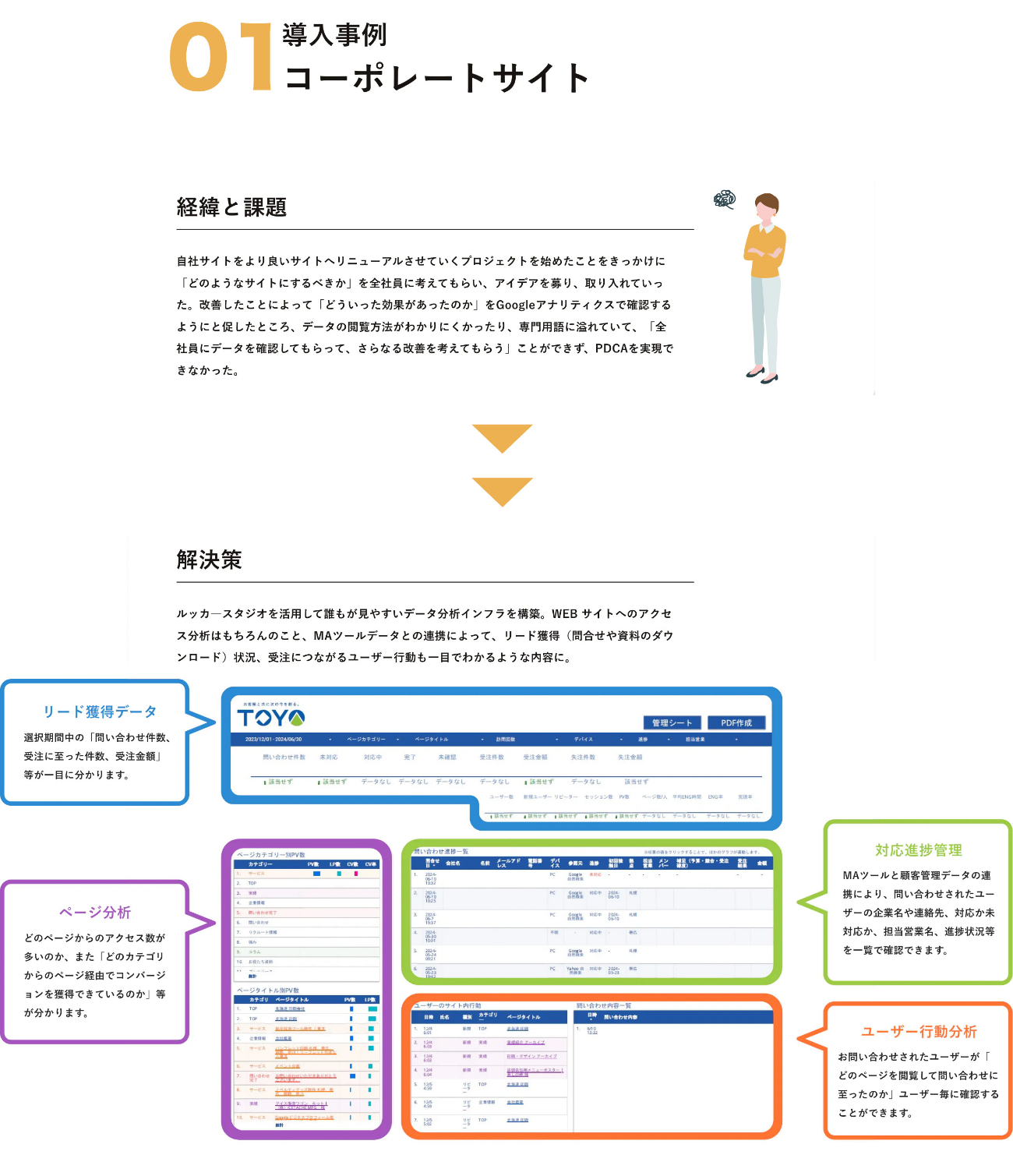 東洋はLookerStudioというツールで数値を可視化し、データ活用の課題を解決します。