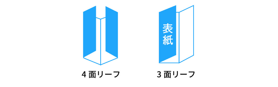 1枚の紙で構成されています。紙を折りたたみ、面を作ることで情報を分けることも可能です。このほかにさまざまなパターンで制作することが可能です。