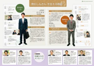 印刷 金融・保険業 採用支援 リクルートパンフレット制作(帯広信用金庫 様) 帯広信用金庫 様 公開日:2019年 新卒採用向けのリクルートパンフレット制作を撮影からプロデュース。 お客様から、堅いイメージを払拭し、明るく楽しい雰囲気が伝わるものにしてほしいとのご要望があり、実際に働いている社員さんの笑顔と明るい色を使用し、フレッシュさを表現しました。