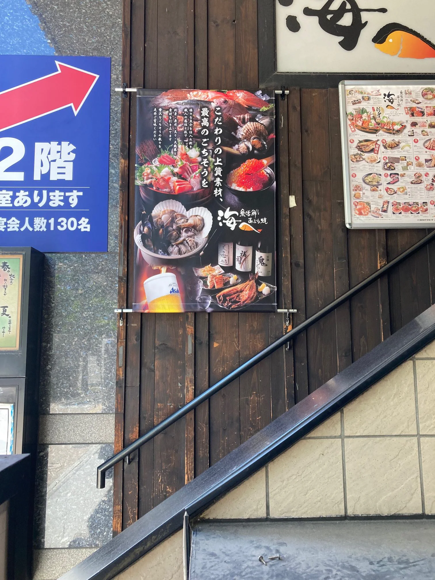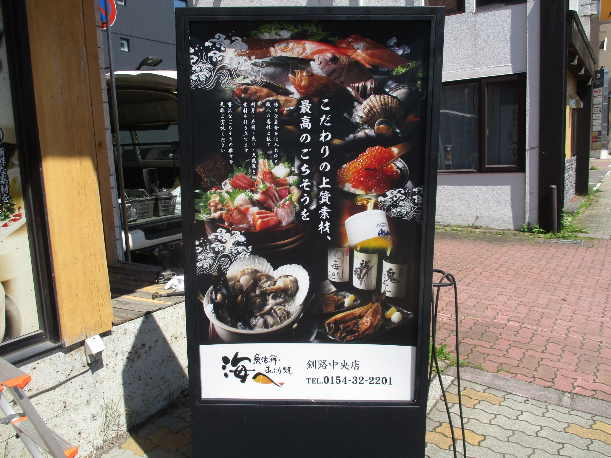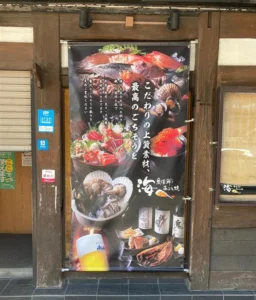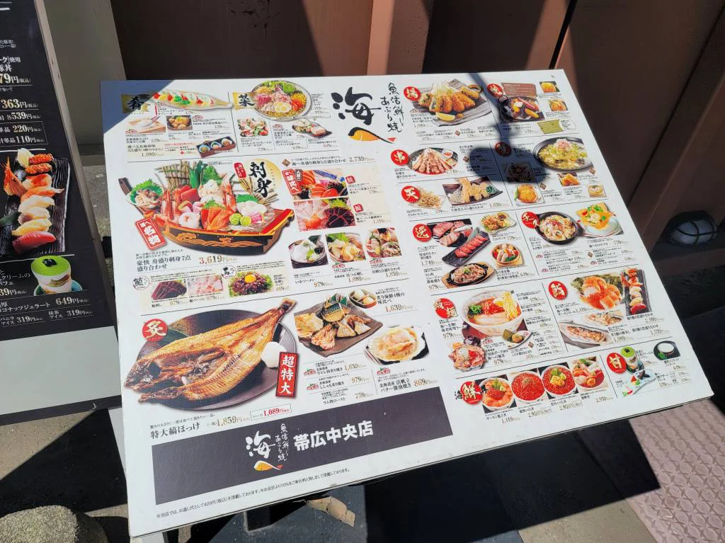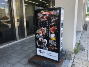グランドメニュー改定に伴い、コンセプト・魅力・店内の雰囲気を店外の歩行者に伝えるため、北海道内「海へ」の各店舗に、屋外サイン(ウインドウシート、自立看板、電飾看板、メニューボード、壁掛けポスター)を設置したかった。